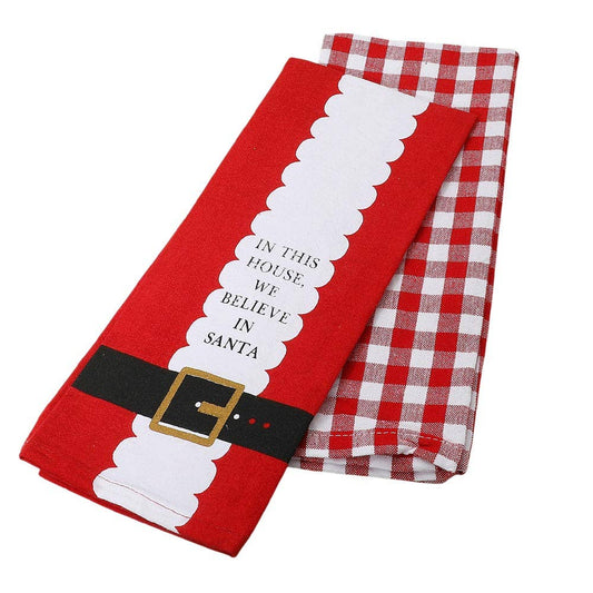 2PCS - Christmas Santa Gingham Kitchen Towel Set