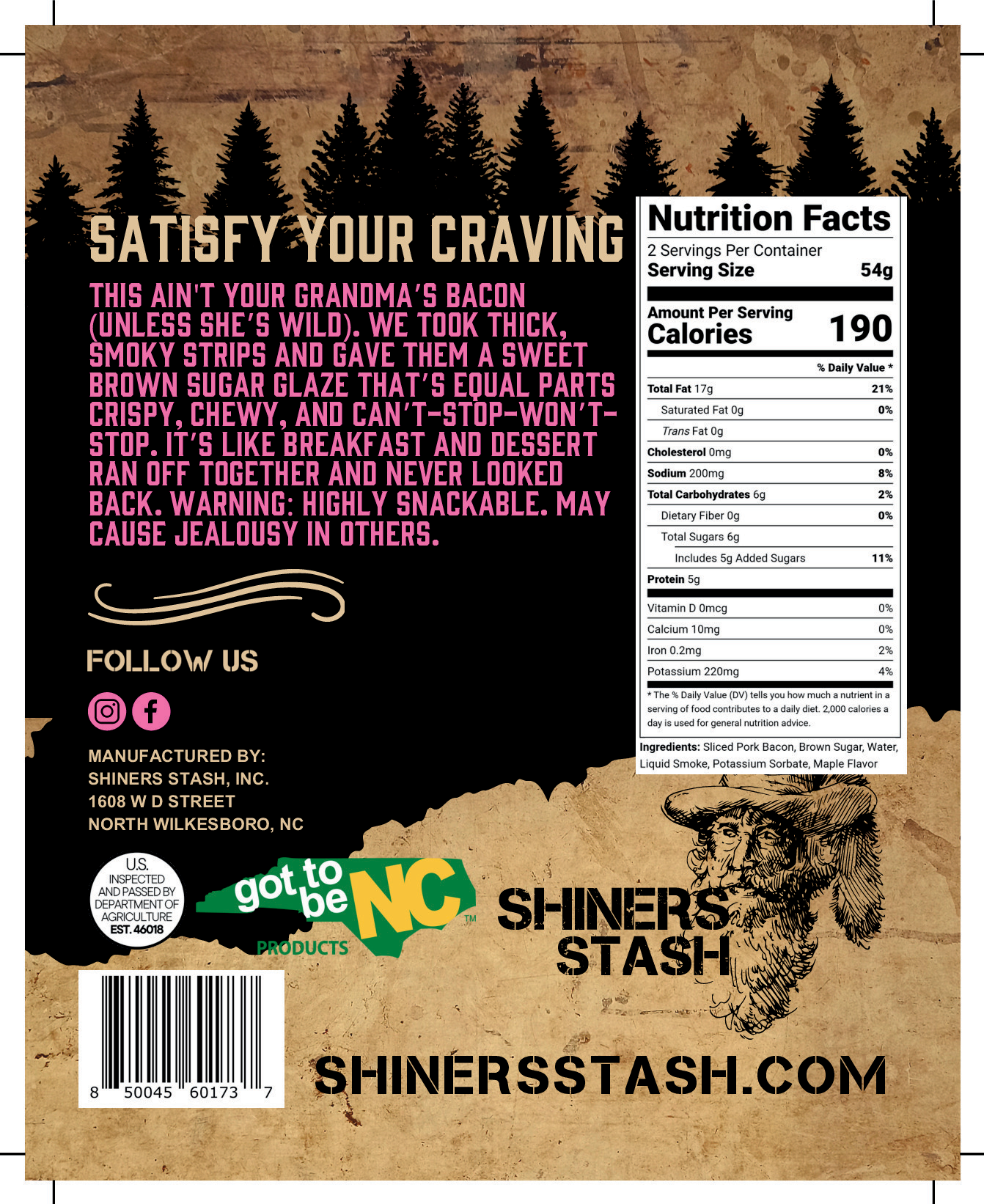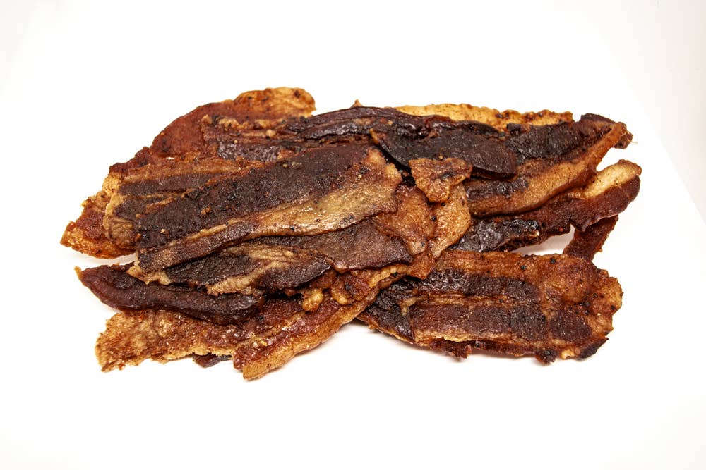 This ain't your grandma's bacon (unless she's wild). We took thick, smoky strips and gave them a sweet brown sugar glaze that's equal parts crispy, chewy, and can't-stop-won't-stop. It's like breakfast and desert ran off together and never looked back. Warning: highly snackable. May cause jealousy in others.