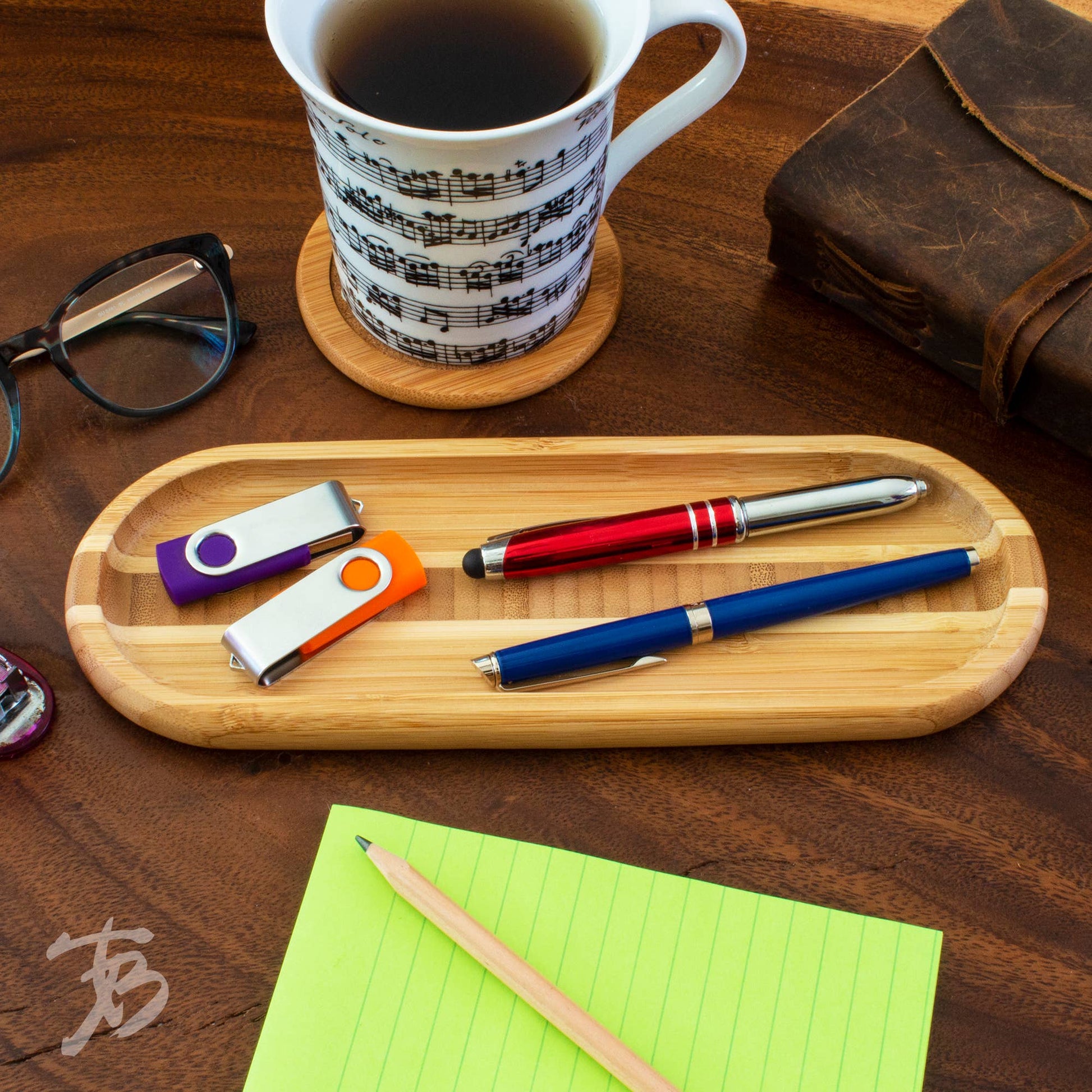 An artful solution to keeping countertops clean, the Catch-All Spoon Rest features a beautiful inlay of end-grain bamboo running down its center. Walled on each side, it's perfect for both storing saucy utensils during cooking or organizing pens and pencils on a desk.Measures 10" x 3-1/2" x 5/8"