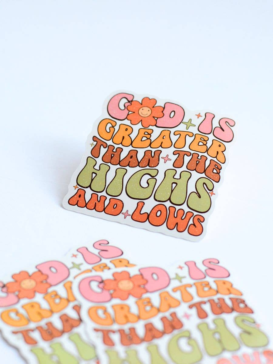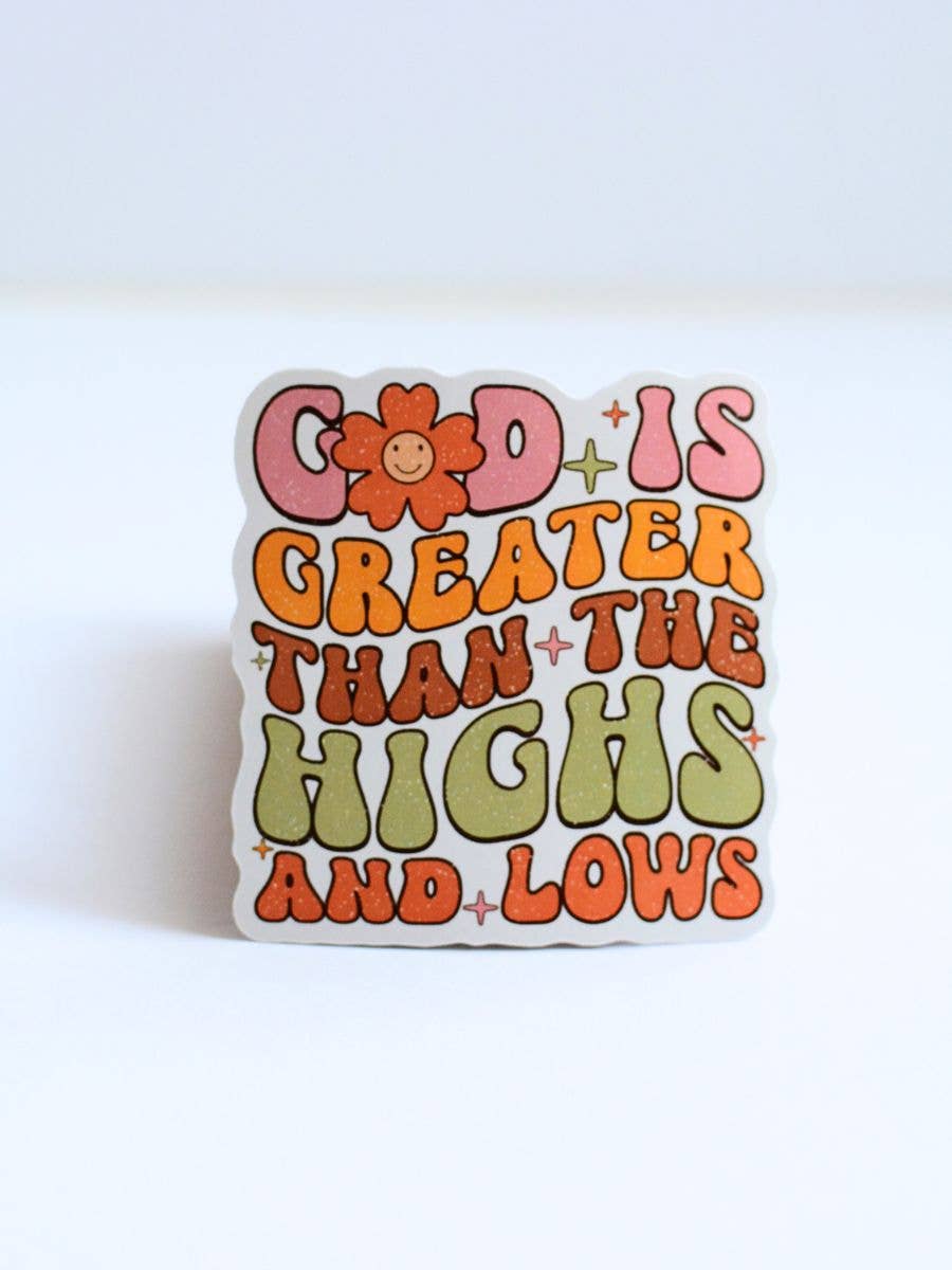 Brighten up everyday items with this “God is Greater Than Your Highs and Lows” sticker pack. Designed in a retro bubble font with a bold, colorful palette, these faith-filled stickers are a fun and meaningful way to spread encouragement. Approx. 3" x 3"