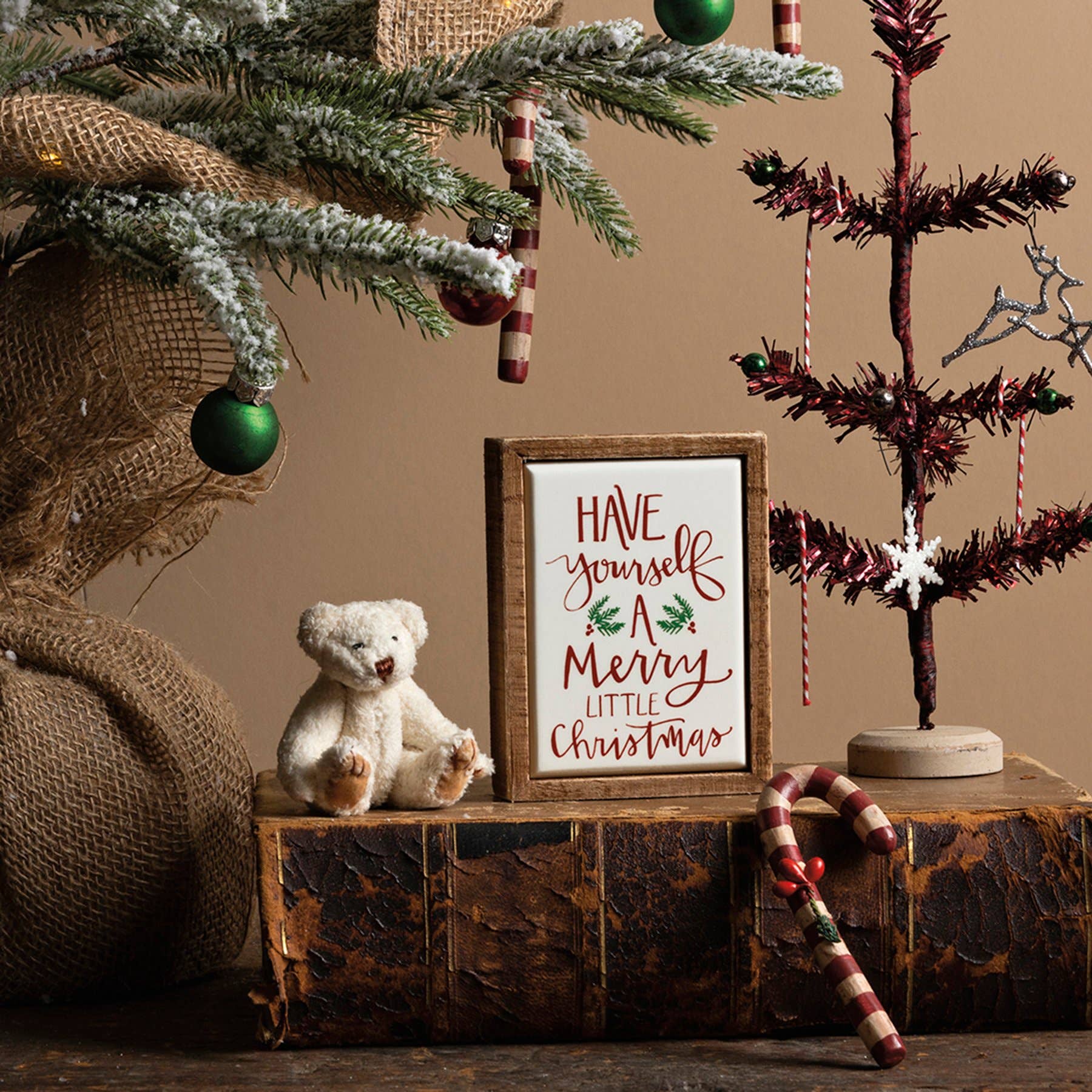 A wooden box sign mini featuring a hand lettered "Have Yourself A Merry Little Christmas" sentiment and tile-like finish. Easy to hang or can free-stand alone.