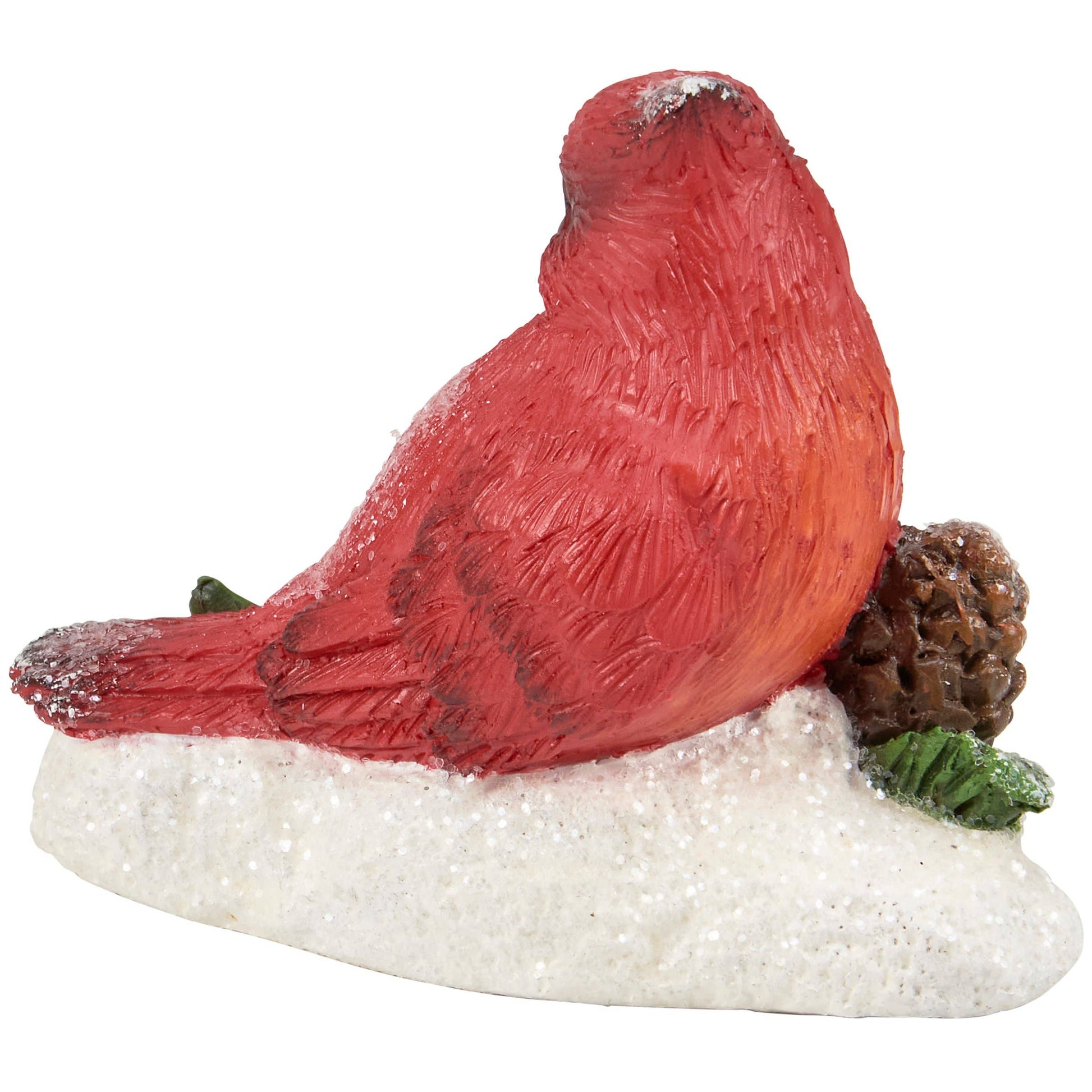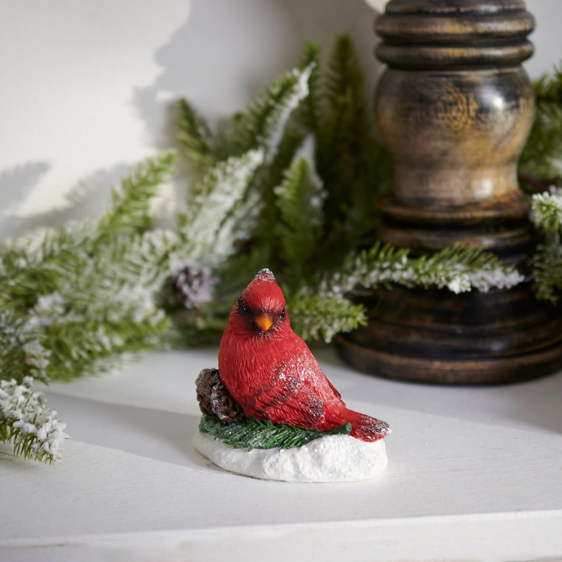 A decorative figurine from our Christmas Collection displaying a detailed design of a cardinal perched on a winter tree branch. Cardinal figurine features sculpted details throughout with touches of glitter for a frosty appearance. Our Perched Cardinal figurine is ideal for a charming seasonal home accent and complements well with other pieces in the collection to create a cohesive display.