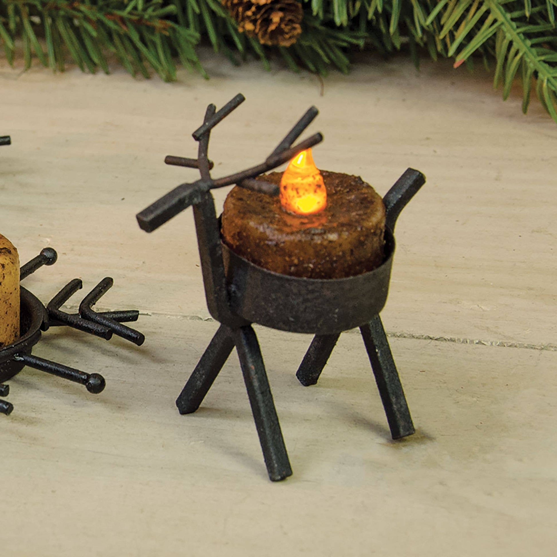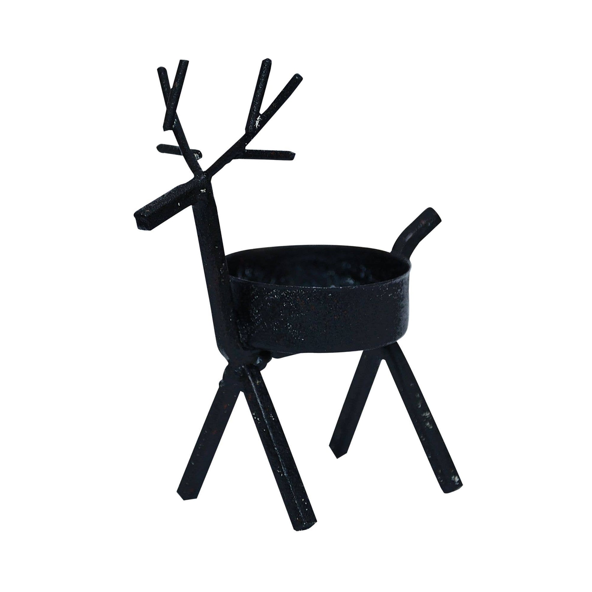 Reindeer Tealight Holders are an adorable holiday accent piece for displaying your favorite candles! Heavy gauge black metal wire in the shape of a reindeer, holding up a 1-1/4" candle cup that holds one small tealight. 3-3/4" tall and 2-1/2" wide. Tealight not included.